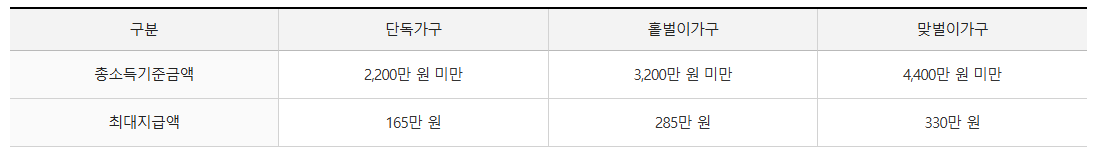 - 홑벌이가구 : 최대 260만 원